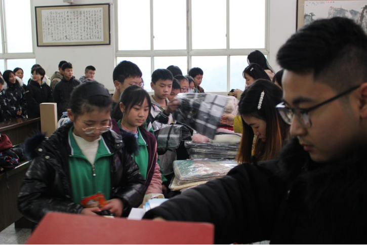 潘旭海、华敏课题组的员工自发募集资金,购置150条围巾、150双棉袜及70本太阳集团tyc33455官网作业本,并以明信片形式寄语“愿你们多读书、乐读书、读好书!以梦为马,不负韶华!”。话语中满含的深情不光给身体保暖防寒,更暖了1825公里之外的心。本科生党支部除了捐献100本笔记本、30个保温杯等物资,还给利店中学的同学们视频授课,讲解日常疫情防控卫生知识,讲述大学学习生活、科研经历,答疑解惑,引导他们好好学习,立志高远,学习专业知识,实现自身理想,将“扶困”与“扶智”“扶志”结合,形成“解困——育人”的机制。
