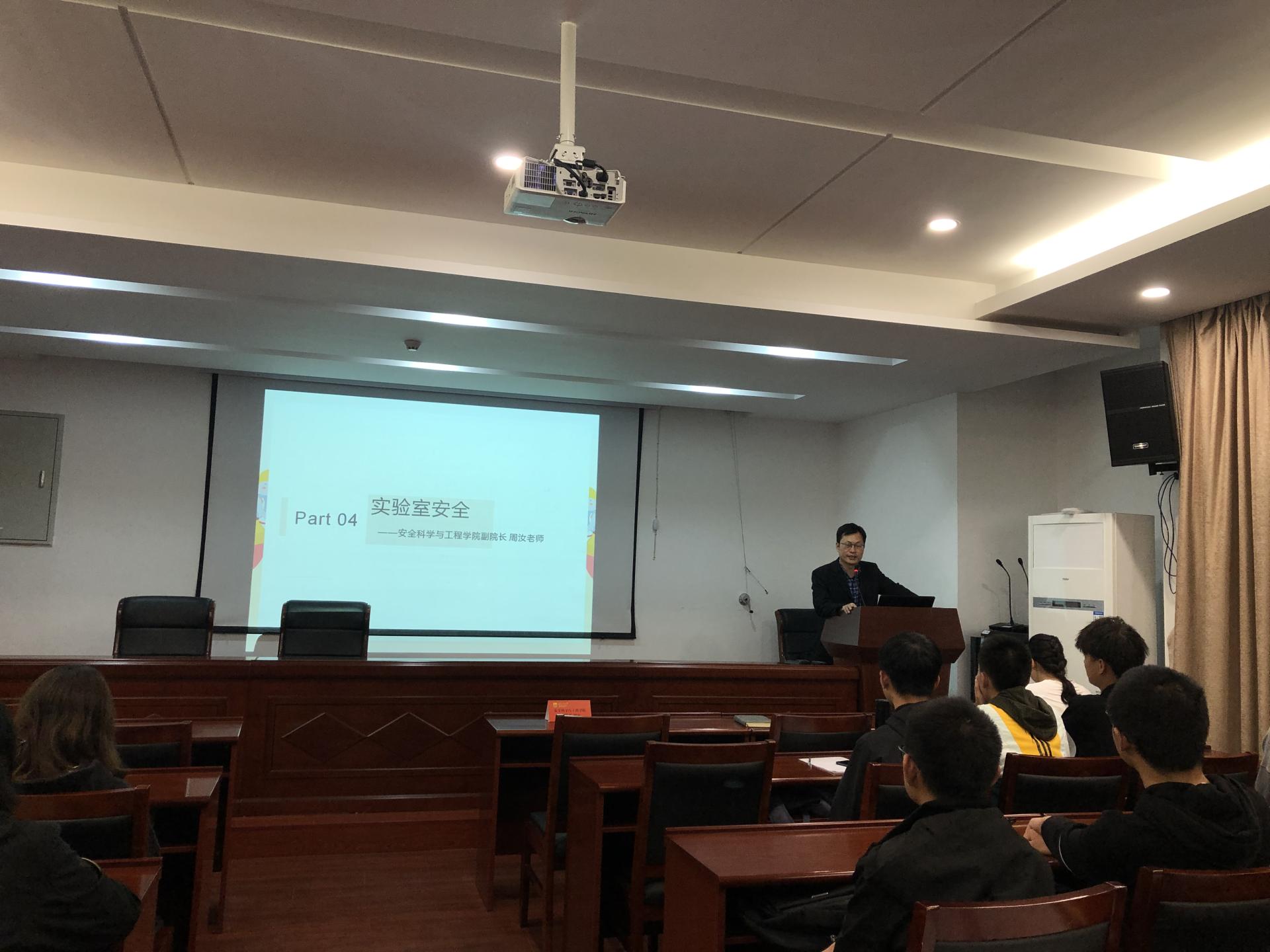 安全公司副经理周汝讲述了自身的访学经历和实验室“事件”,以“人、机、环、管”四步骤出发,强调实验室安全教育对员工课程学习的重要性,告诫同学们要强化实验室安全意识、遵守实验室规章制度、提高自身警惕。周汝老师的讲话另在场的同学们陷入沉思,暗自牢记在心、引以为戒。