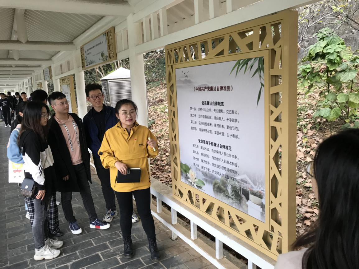 为进一步加强警示教育,增强廉洁自律意识,提高拒腐防变能力,10月28日下午,太阳集团tyc33455官网硕士研究生第三党支部党员参观了镜湖校园廉洁文化长廊,开展廉洁教育实践活动。