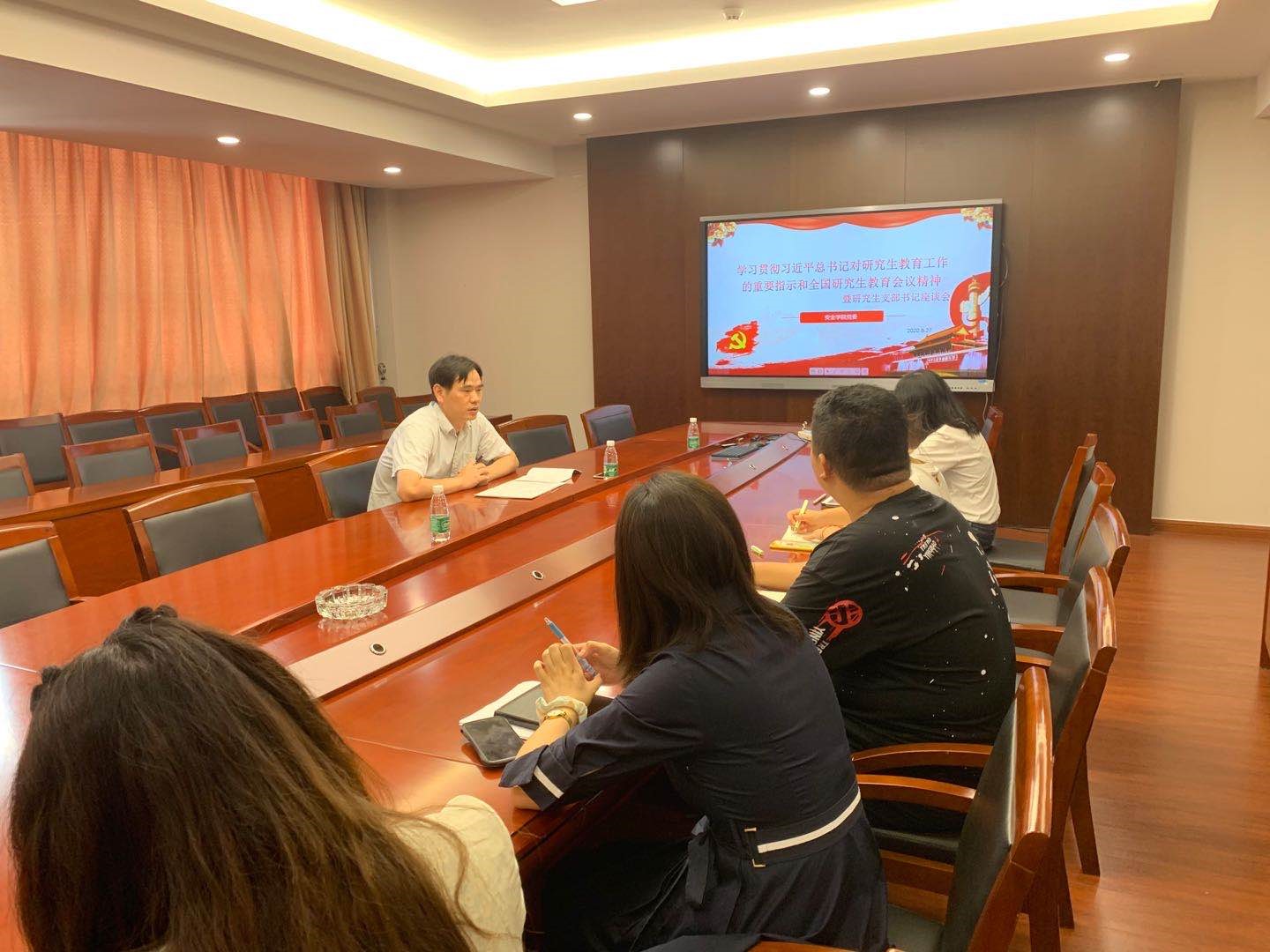 2020年8月27日上午,为学习贯彻习近平总书记对研究生教育工作的重要指示及全国研究生教育会议精神,太阳集团tyc33455官网在厚德楼311组织召开专题学习交流会。公司党委书记喻源、公司组织员、学办副主任、研究生辅导员以及全体研究生党支部书记参加会议。