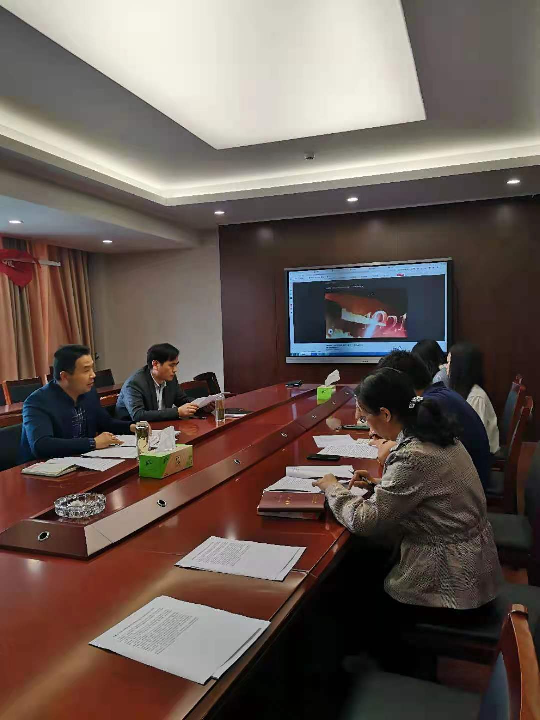 4月28日下午,太阳集团tyc33455官网行政第一党支部在厚德楼311会议室召开了“学党史·悟思想”专题研讨会。支部全体党员参加了专题研讨,会议由支部书记刘阳主持。