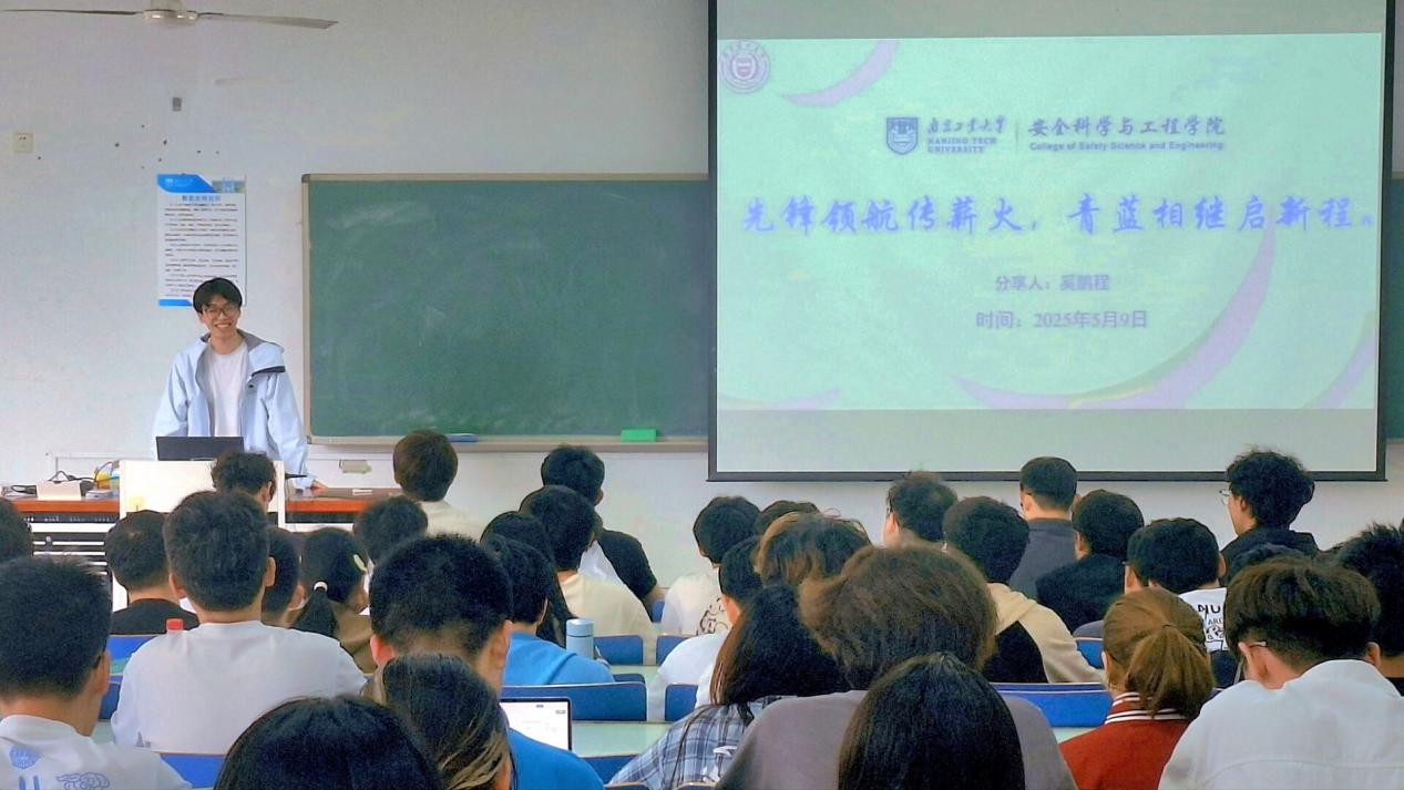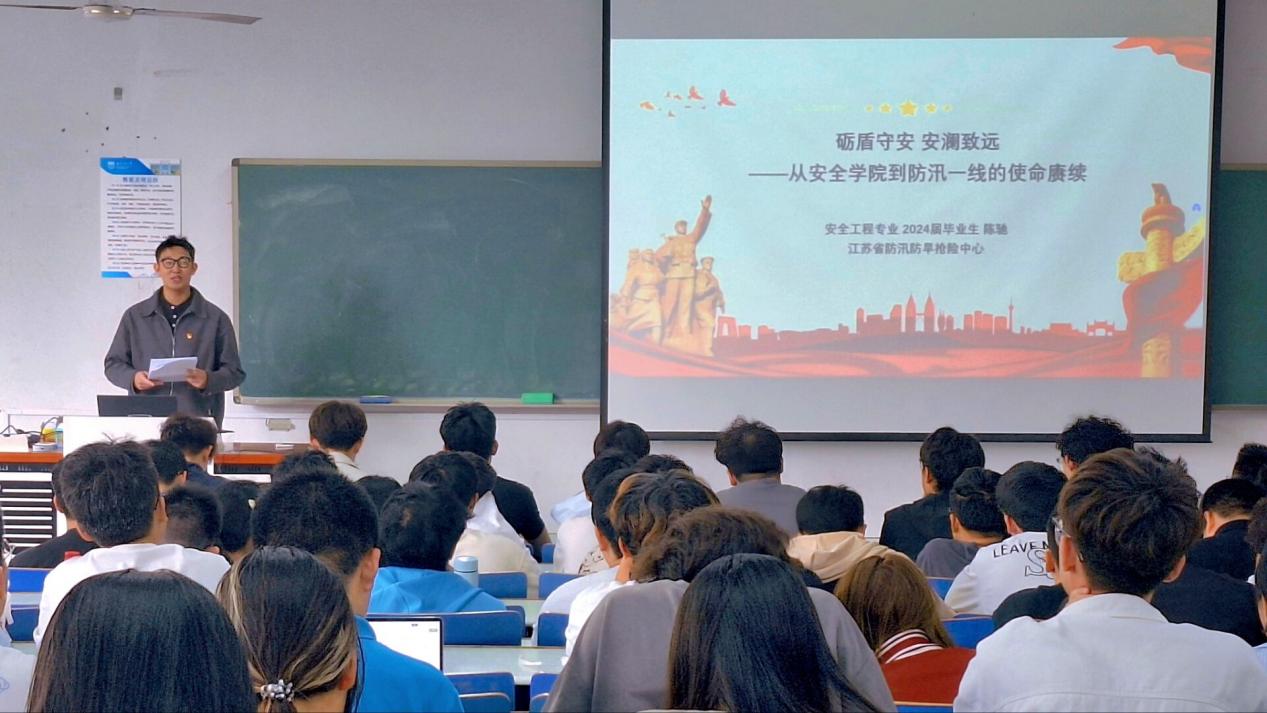 初心引航,基因赓续点燃信仰之光。升学至南京理工大学的奚鹏程同学结合自身大学期间团学组织工作经历和志愿服务经验,鼓励大家掌握科学的学习方法与时间管理策略,主动作为、勇于担当。学业导航,青蓝结对解锁成长密码。升学至中国科学技术大学的雷昊洋同学围绕自身的专业学习、科创竞赛经历,劝勉大家在本科阶段夯实专业知识、深化综合技能,提升专业素养,锻炼强健体魄,不断向下扎根、向上成长。职业领航,就业先锋共话规划方向。就职于江苏省防汛防旱抢险中心的陈驰同学从自身职业选择和岗位工作内容角度出发,分享了新时代安全人的党性淬炼和使命担当,激励同学们明确目标、前置规划,以“日拱一卒无有尽,功不唐捐终到海”的决心砥砺前行。