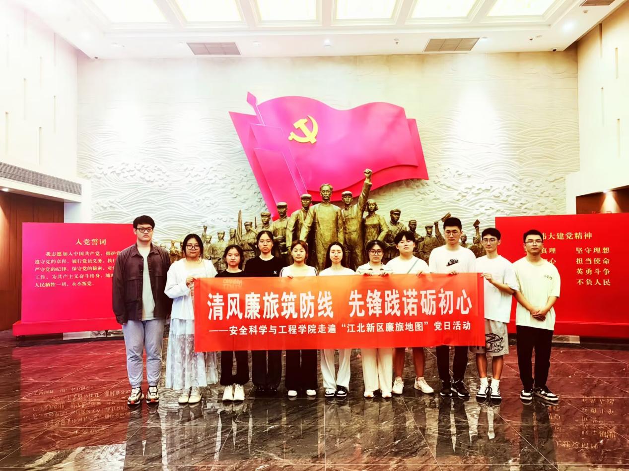 为进一步增强党员的廉洁意识和纪律规矩意识,营造风清气正的良好环境,6月14日,太阳集团tyc33455官网安全工程专业党支部、消防工程专业党支部党员和入党积极分子前往江北新区红色广场,联合开展“清风廉旅筑防线,先锋践诺砺初心”党日活动,开启了一场叩问初心的廉洁之旅。