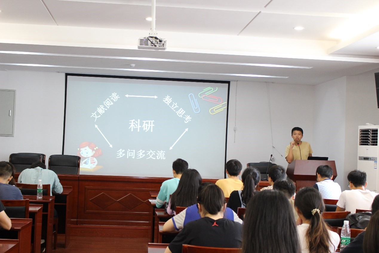 会议伊始,朱峪铖介绍了本次交流活动,希望新生们积极把握机会,能够有所思考,有所收获。随后,18级博士陈治全以自身读研读博的经历,透过阐述“为什么要读研,如何去读研”这两个问题,说明读研的重要性。同时提醒同学们在进行科学研究时,要做到条理清晰、逻辑合理,通过主观判断,远离误区,并要严谨治学,精益求精,切记戒骄戒躁。另外,建议同学们在读研期间能够高度自律,加强体育锻炼,保持良好的心态和身体素质。之后,19级博士郭鑫鑫从“如何进行科学研究”着手,建议同学们树立明确的研究目标,落实研究方案,制定研究计划,确定自己的研究结论。同时强调在进行文献阅读的时候,将阅读过的科技论文和专利进行分类汇总,以便后续查找和重复阅读。接下来,17级研究生王启华就如何进行科学研究的整体思路进行了系统全面的介绍,重点强调独立思考在其中的重要作用,另外对助管的工作内容进行了介绍,包括公司对于研究生的奖助政策的具体实施和班级信息管理等内容。随后,17级党支部书记颜鹏向大家介绍了研究生入党的详细流程,并向新生们说明了入党的一系列要求。