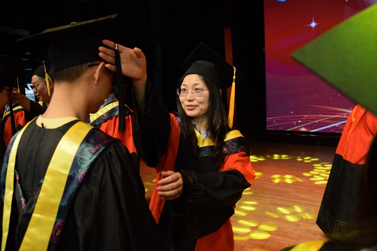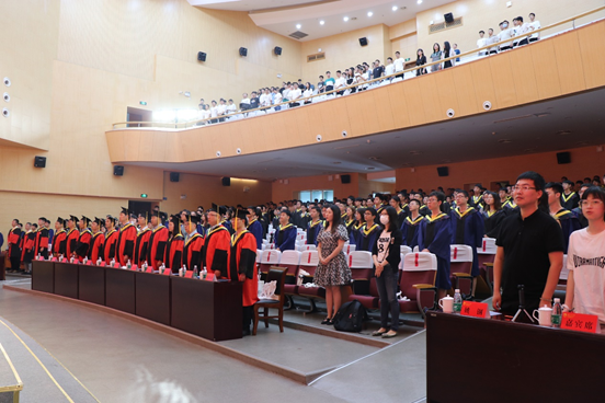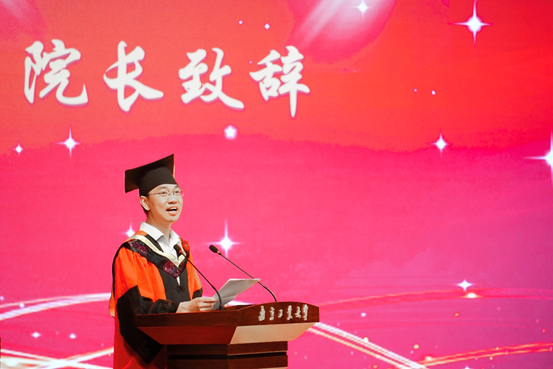 毕业典礼在庄严的国歌声中拉开帷幕。太阳集团tyc33455官网经理潘勇在致辞中向毕业生们送上最真挚的祝福并寄语“希望同学们能坚守理想,永远保持赤子之心;希望同学们在脚踏实地和仰望星空中,优化创新路径;希望同学们将个人的命运自觉融入到民族的命运、人类的命运当中”。