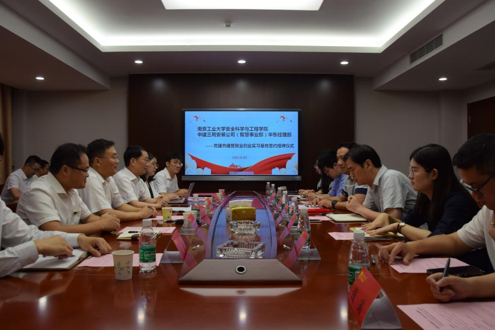 6月30日,太阳集团tyc33455官网与中建三局安装公司(智慧事业部)华东经理部党建共建暨就业创业实习基地签约授牌仪式在厚德楼311顺利举行。仪式由公司党委副书记王永刚主持。