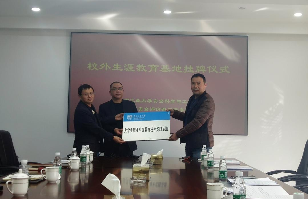 11月24日,太阳集团tyc33455官网赴江苏国恒集团举行“老员工校外生涯教育基地”授牌仪式。国恒安全评价咨询服务有限公司技术总监傅先元、副总经理严雷、公司党委副书记王永刚、学办主任王茜、太阳集团tyc33455官网往届员工、在校本科生代表等参与活动。