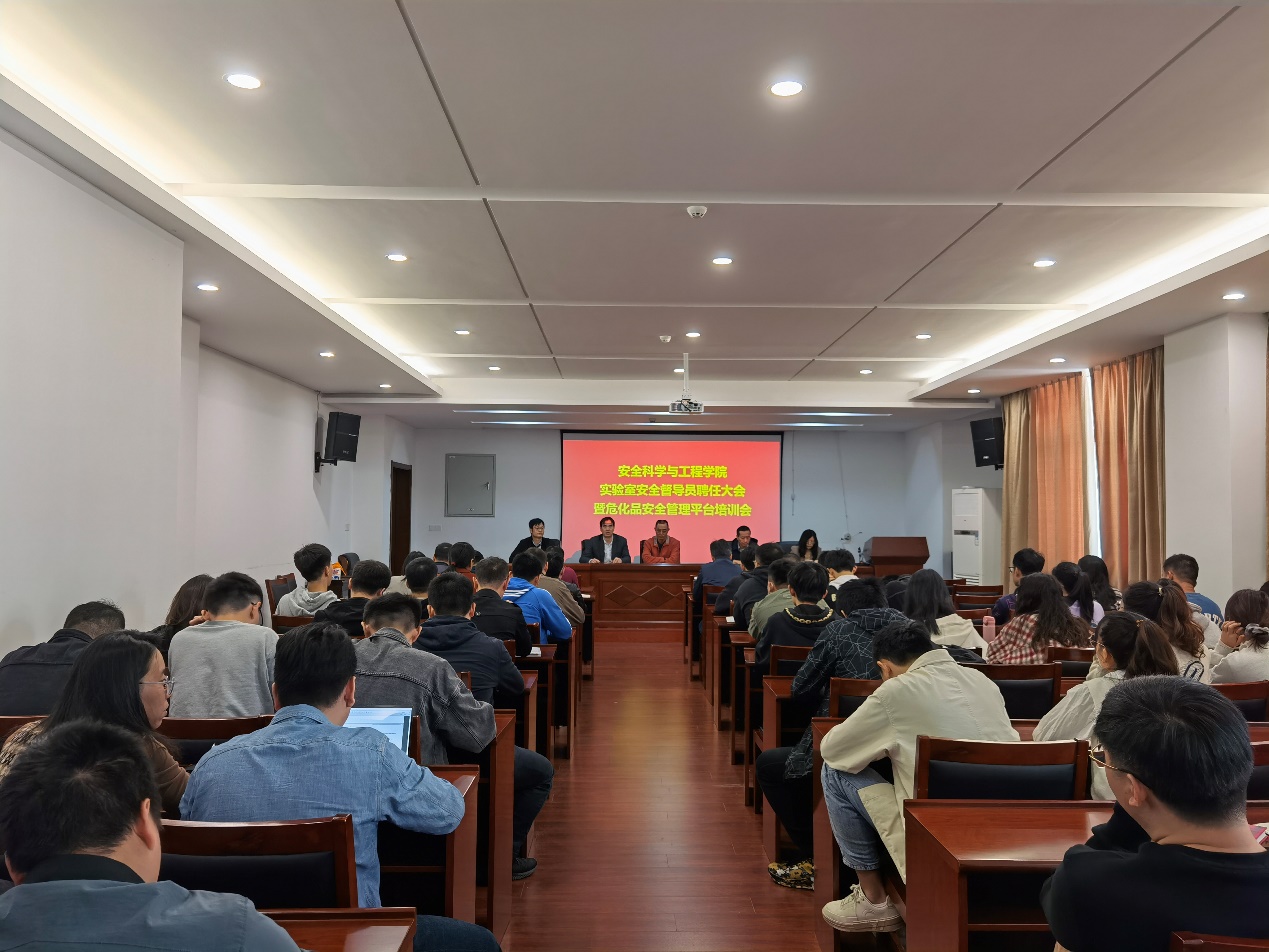 首先,副经理周汝明确了近期公司关于实验室安全管理的相关要求,强调加强重点隐患治理,进一步防范化解公司安全风险。然后,喻源书记宣读了公司关于聘请诸德志、皮教文、丁杰等三位专家为公司实验室安全督导员的决定,并向到场的两位专家颁发了聘书。喻源书记针对实验室安全向公司师生提出要求:一、要提高思想认识,实验室负责人、导师与员工要充分认识实验室安全的重要性;二、公司师生要全面落实公司、公司的安全管理办法,定期开展实验室风险排查,防范化解安全风险;三、要坚持以人为本,关爱员工,切实解决实验室安全问题。最后,张彬教授开展了危化品安全管理平台的专题培训,进一步强化了公司实验室危化品的安全管理。