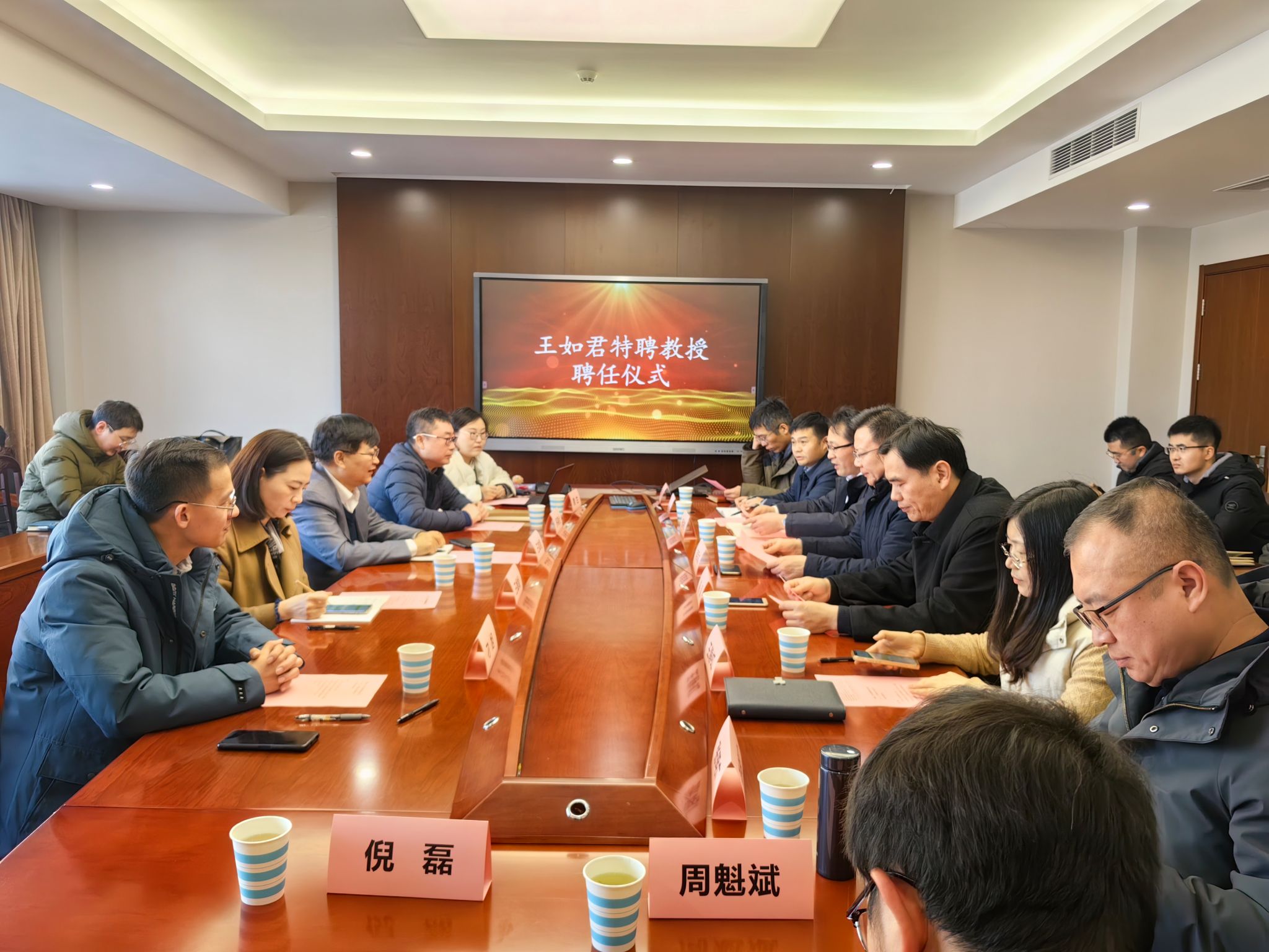 仪式由公司党委书记喻源主持。人事处副处长杨洪俊介绍了王如君的简历及成就。蒋军成为王如君颁发聘书并佩戴校徽,员工代表为王如君献花。