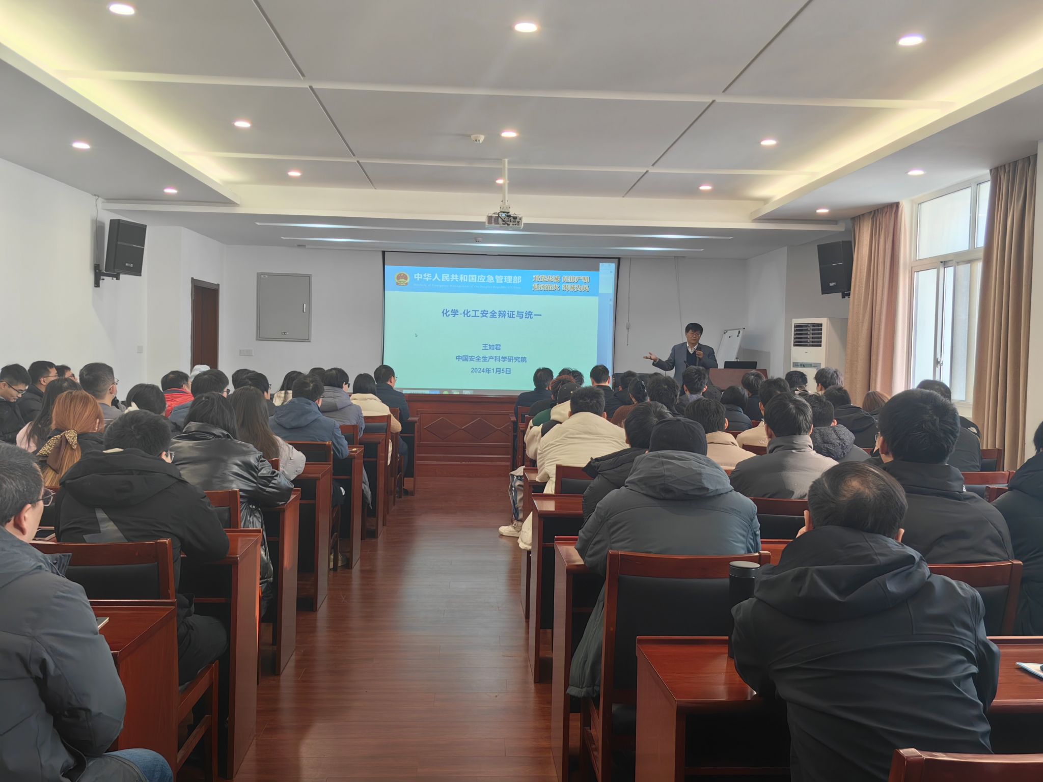 聘任仪式后,王如君、中国安全生产科学研究院危险化学品安全技术研究所所长多英全博士为公司师生分别作了题为“化学与化工安全统一辩证关系”“危化品建设项目风险防控”的精彩学术报告。