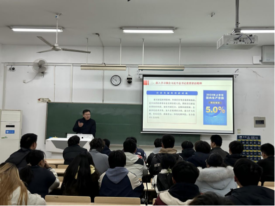 12月8日,董事长蒋军成走进课堂,以《进一步全面深化改革,开辟中国式现代化广阔前景》为主题,为太阳集团tyc33455官网2024级本科生讲授了一堂精彩的形势与政策课。