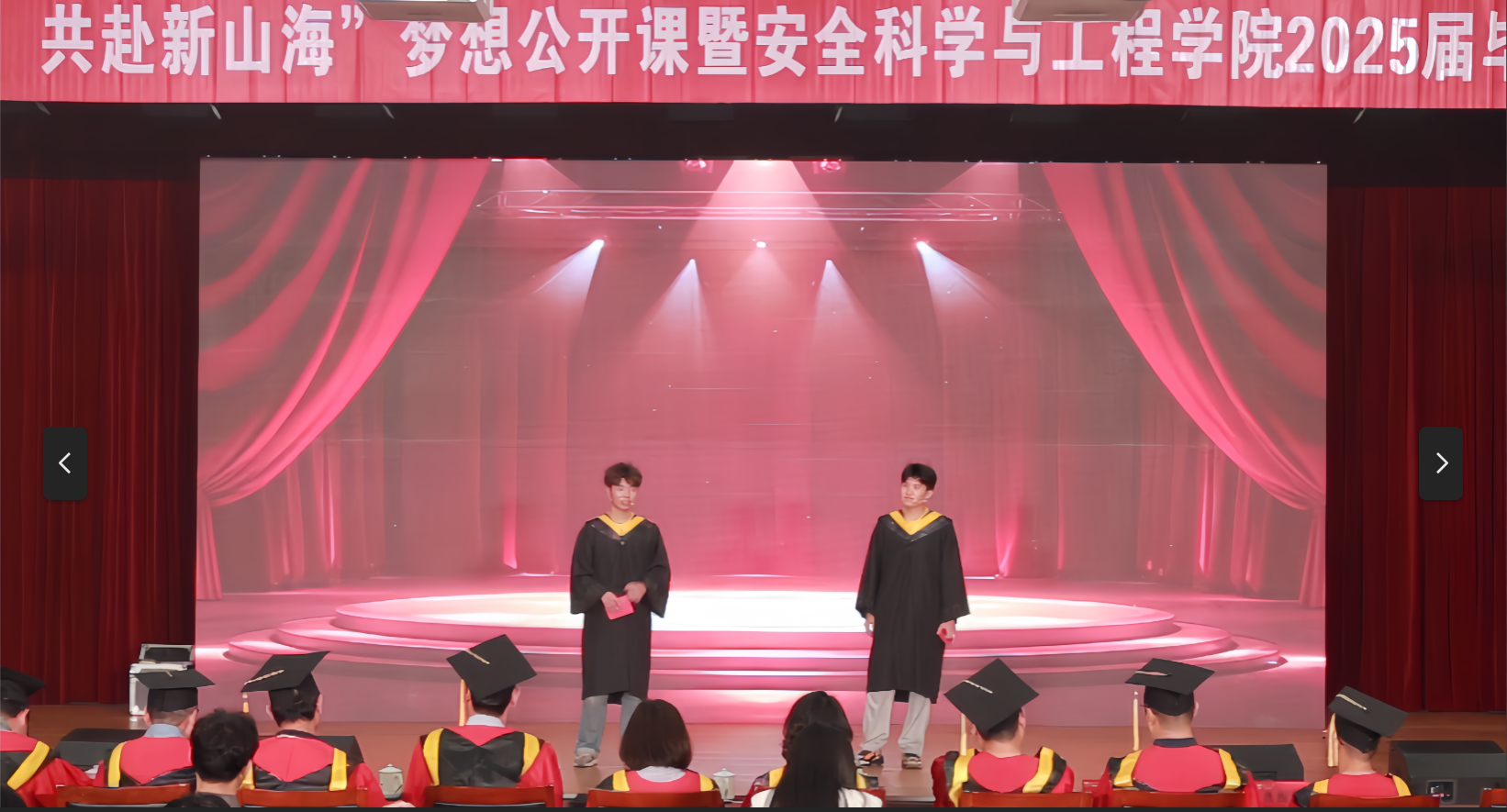 6月11日晚,太阳集团tyc33455官网“筑梦安全路,共赴新山海”梦想公开课暨2025届毕业生欢送会在笃学楼报告厅隆重举行。公司领导班子、教师代表、各年级辅导员、2025届毕业生参加本次活动。