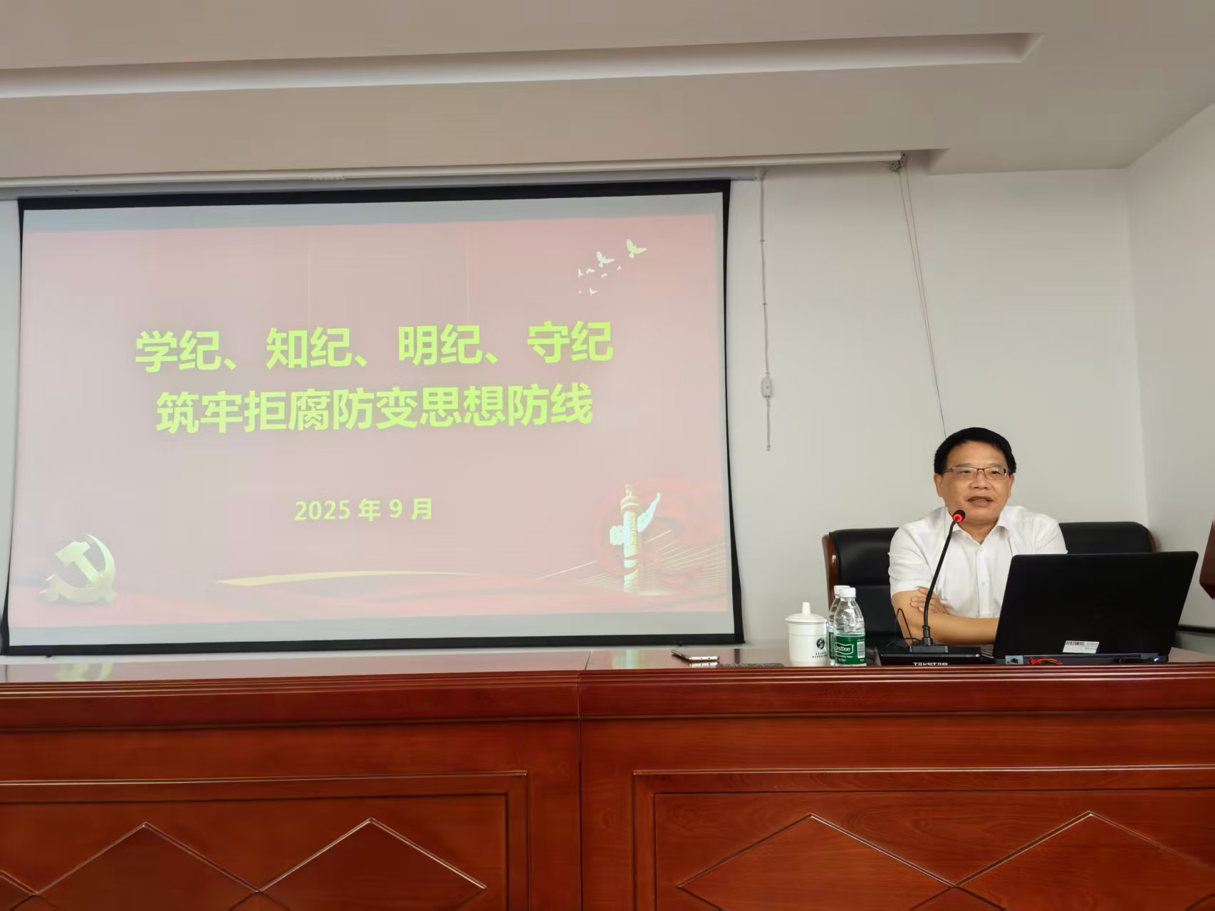 校领导为太阳集团tyc33455官网教师讲授纪法教育专题课