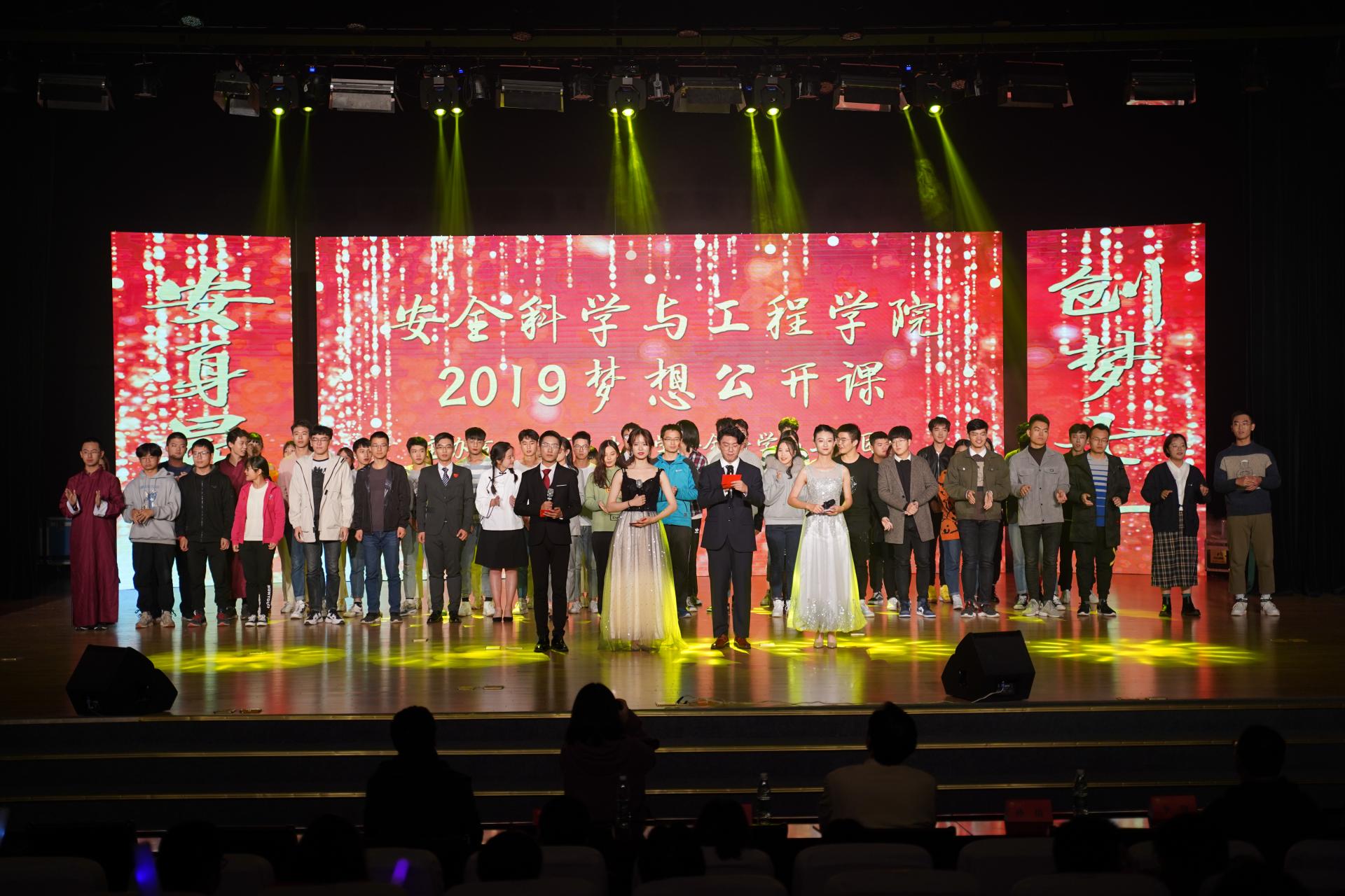 时逢中华人民共和国成立70周年,本次梦想公开课旨在为祖国献上青年的祝福。乐团“第六宇宙速度”为我们拉开公开课的序幕,朗诵《梦与魂》彰显新时代的青年力量,音乐节目《认真的青春》诠释青春态度,舞蹈《跳舞,我们是认真的》表现青春活力,《生财有道》以相声形式传递正确价值观,歌曲串烧《迷途少年》展示新一代青年的追求与理想,校街舞社团SSO星舞团带来了惊喜舞蹈《you got me bet》,小品《铲黑除恶》弘扬清风正气,小班们的舞蹈表演《火力全开的众giao天团》赢得片片掌声。整场公开课内容丰富,精彩不断。最后,全体演职人员合唱歌曲《相亲相爱》,此次活动圆满结束。