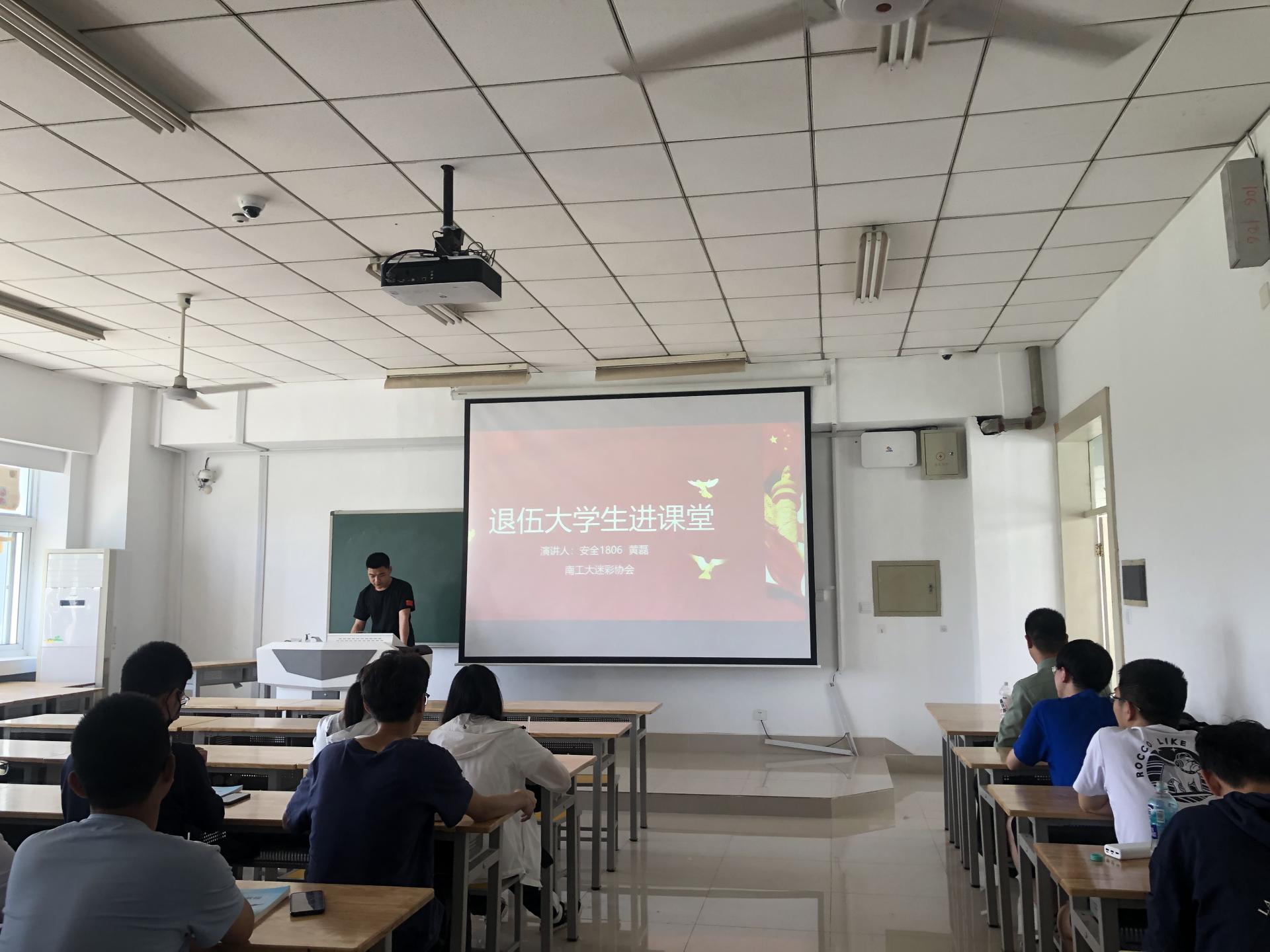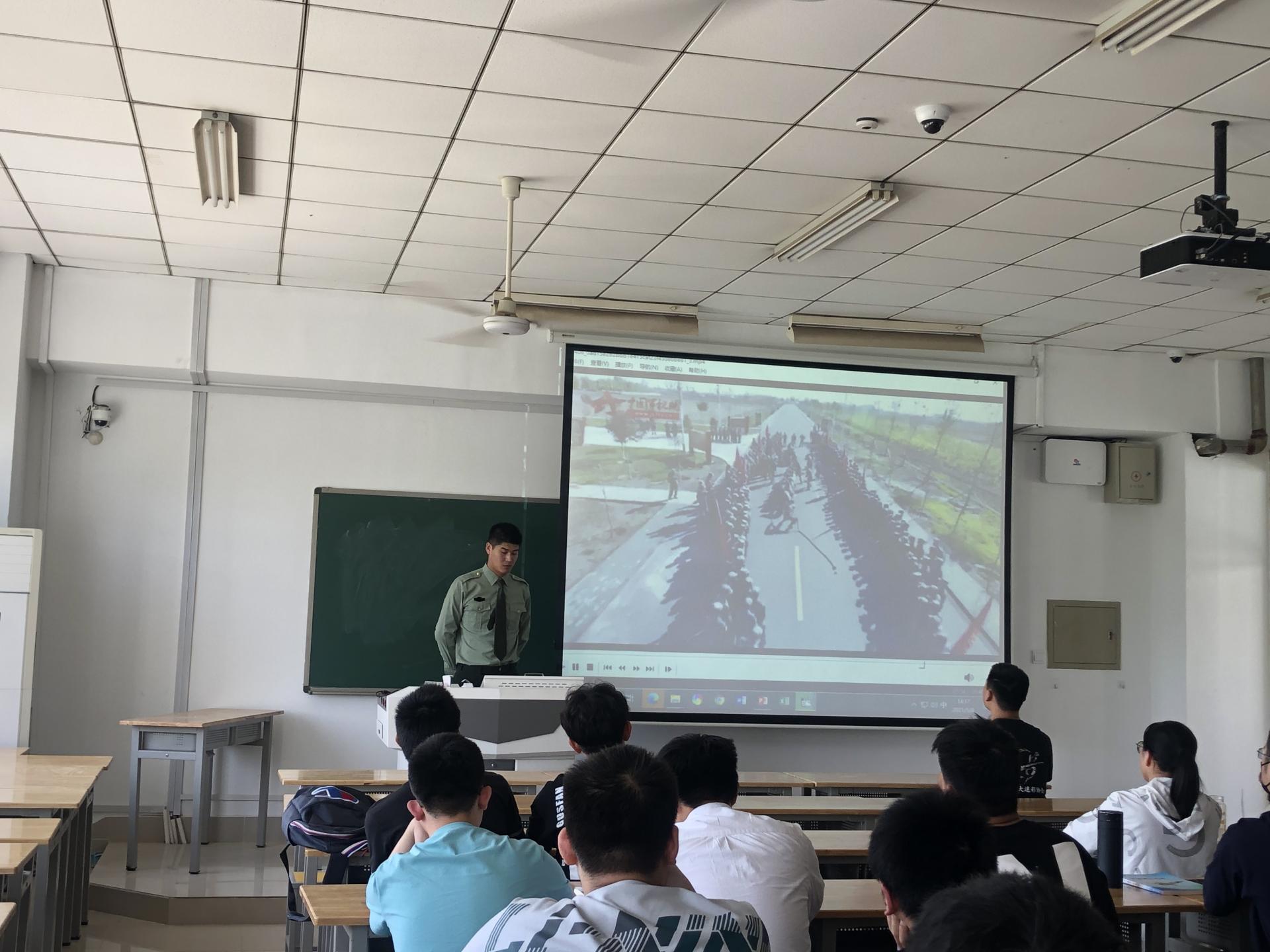 活动开始,在场同学一同观看了征兵宣传片。随后,乐平老师对应征报名工作流程及老员工参军优抚优待政策作了详细解读。安全1806班张峰同学、黄磊同学作为公司退役老员工士兵代表,分别讲述了自己军旅生涯的成长与收获、感受与体会,并结合自身的成长经历,与同学们分享他们在火热军营中锻炼成长、报效祖国的青春梦想。