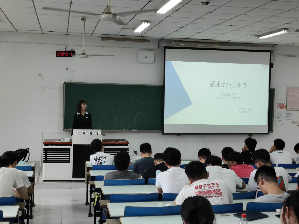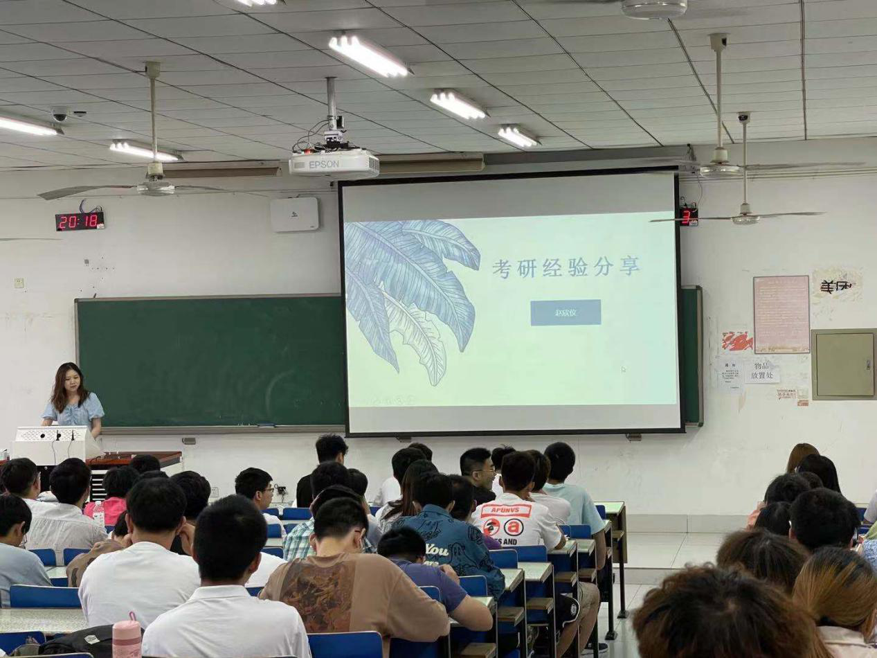 首先,汤静同学讲解了保研的所有流程和评分标准,勉励同学们努力学习,多参与各类学科竞赛。接着,赵欣怡和耿娇两位同学分享了一年多的考研心路历程。她们提出了具体、细致的阶段性复习计划,同时讲述了自身考研过程中遇到的困难、挫折以及克服的办法,鼓励大家要持之以恒,锲而不舍的朝着目标奋斗。然后,由进入世界五百强公司的魏倩同学给大家分享自己找工作的经验。她强调了面试的准备重点,并讲述了其经历的9家单位的求职过程,让同学们也仿佛亲身体验了一回求职的艰辛。最后,由考入六合区应急管理局的王寅同学给大家介绍了公务员考试的准备过程。他风趣幽默地讲述了公务员岗位的优势,同时细致地讲解了需要重点准备的题型,赢得了同学们的阵阵掌声。