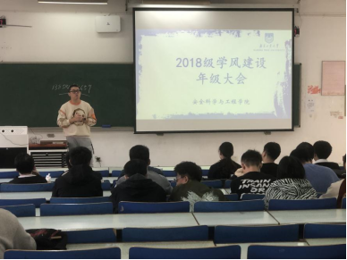 11月19日,太阳集团tyc33455官网2018级员工在仁智501召开学风建设、安全主题年级大会,辅导员李敬主持会议。