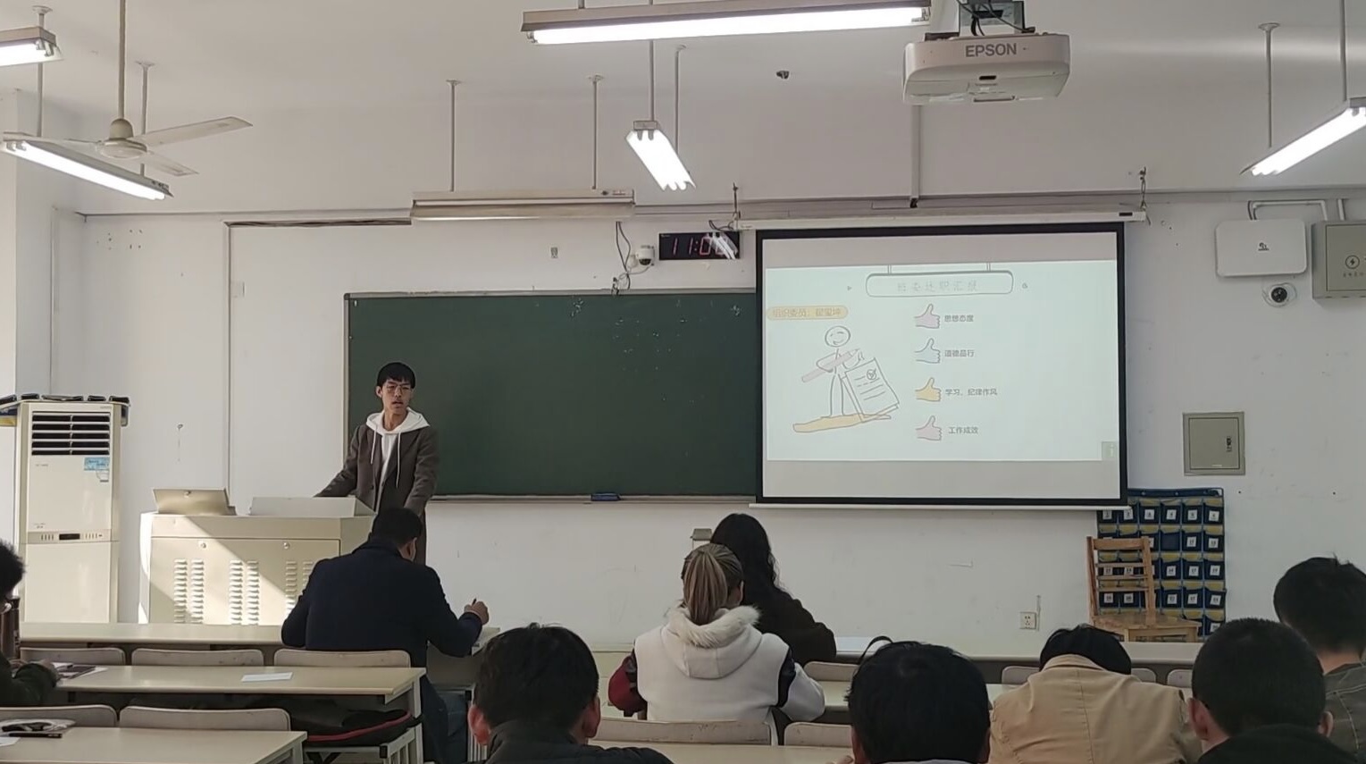 本次班会分为班委述职、老师讲话和班委竞选三个环节。各班委从思想态度、道德品行、学习情况、纪律作风、工作成效五个角度依次进行述职,汇报班级工作和建设成效。同时,针对班级现状,指出工作不足,提出建设目标。会上,冯旭光、熊欣怡同学就班长职位展开竞选演讲。