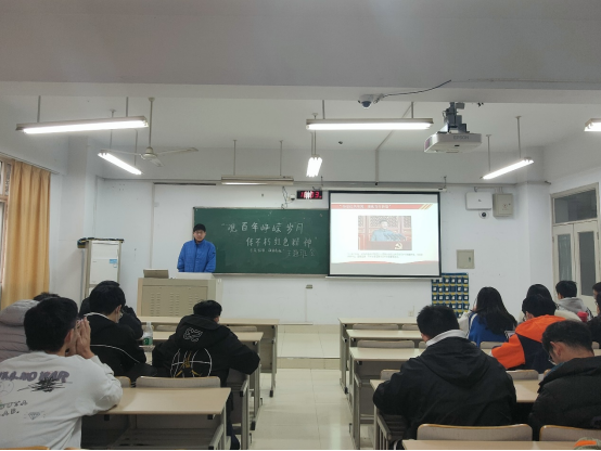 会议伊始,张宇杰就此次活动背景和活动目的进行了详细阐述,指出2021年是中国共产党自诞生以来,艰苦奋斗,砥砺前行的第一百个年头,如此盛好的时代需要我们走在前列,勇立潮头,勇于追梦圆梦。紧接着,张宇杰分别从“传承红色基因,赓续百年新篇”、“志愿军浴血奋战,新青年思想争锋”等六个方面进行了理论知识的分享和学习,张宇杰同学通过相关视频片段的播放和PPT知识展示相结合的方式阐述了中国共产党自成立至今的大事记,共同回顾我党走过的光辉历程。带领团员青年学习中国共产党“坚持真理、坚守理想,践行初心、担当使命,不怕牺牲、英雄斗争,对党忠诚、不负人民”伟大精神。最后张宇杰对活动进行总结,强调指出时代在变,但青年人的生机和活力不变,青春的热血一直相连,奋斗的誓言始终相遇,为实现第二个百年奋斗目标,为实现中华民族伟大复兴的中国梦,不负韶华,创造新的奇迹!