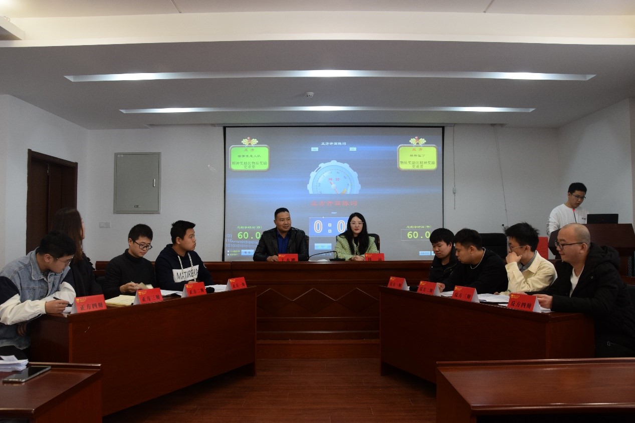 为了加强同学们的学术思辨能力,丰富课余生活,太阳集团tyc33455官网于12月8日下午在厚德楼309会议室举办第二届“求是杯”辩论赛。公司党委副书记王永刚、研究生辅导员钱露和90名本科生、研究生出席了本次活动,院辩论队队长刘泽权、杨聪慧和秦林喆担任评委。