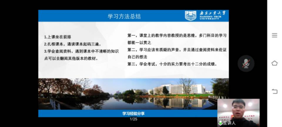 在课程中,优秀员工代表吉润来同学与苗雨轩同学先后分享学习经验,让新生对大学学习和生活进行更为深入的了解,清晰大创和竞赛活动的意义;周钰鑫同学和林子铭同学给新生们带来的科创经验分享,为新生们指明更为明确的学习方向和目标;冯旭光同学的公益服务分享阐明社会实践的重要性;张兆琛同学分享支教活动展示了不一样的老员工活。最后主持人宣布“助苗破土,向阳生长”新思想公开课圆满结束。