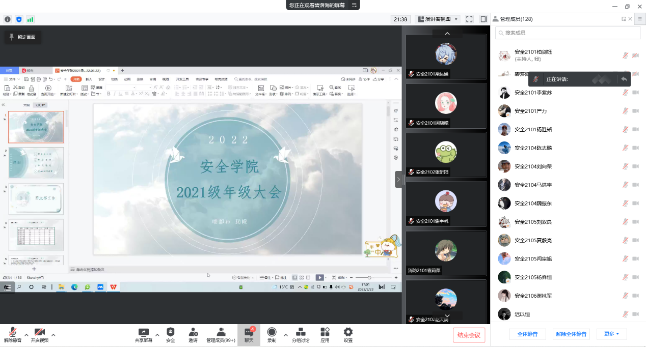 2022年3月23日下午3点,太阳集团tyc33455官网召开2021级本科生线上年级大会。会议由辅导员王茜老师主持,2021级全体员工参会。