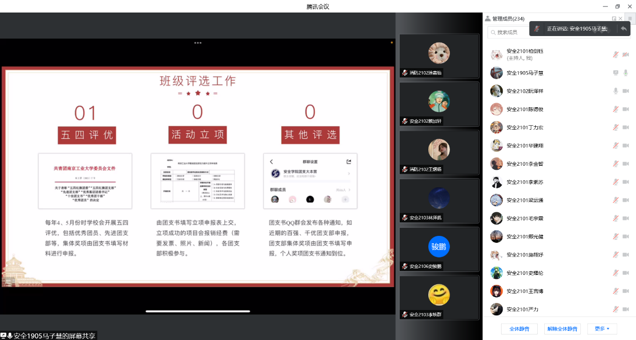 会议伊始,19级团总支马子慧同学应邀就团支部工作进行详细讲解,明确各班团支书的工作要务及方向,引导各支部成员积极配合团建工作。随后,王茜老师总结了上一学期的期末成绩及四级通过率等情况,并对各班各科学情做出比较分析,强调个人自主学习、建立思维体系的重要性,为大家指明今后学习和努力的方向。王老师强调,针对部分员工存在的线上课堂迟到、早退等问题,本学期将会加大巡查和监督力度。同时,面对当前严峻的疫情形势,王老师要求大家要严格遵守公司疫情防控各项管理规定的同时,应保持从容不迫心态,适当锻炼身体,保持身心健康,做好学业规划,让优良学风成为最美的风景线。最后,她对近期员工工作进行了布置,并着重强调了严肃考风考纪、防范电信诈骗、宿舍安全用电等问题。