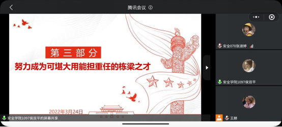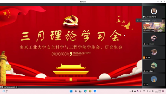 为强化员工思想理论建设,坚持动态学、专题学,3月24日晚,太阳集团tyc33455官网员工会、研究生会通过线上形式召开三月政治理论学习会。本次会议由张萌盟主持,院员工组织成员集体参加。