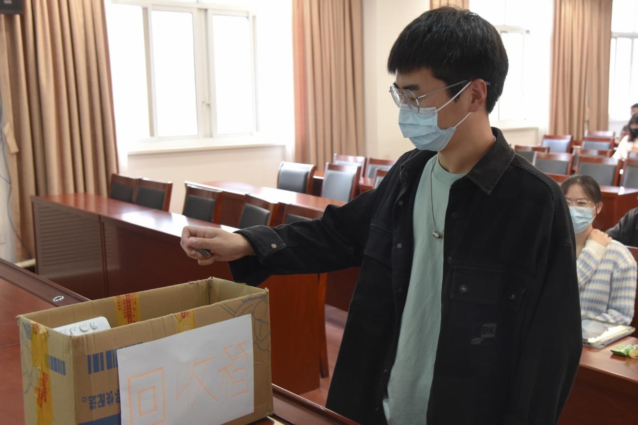 本次主题活动分为三个环节,首先工作人员组织参与者将提前准备好的废旧电器有序投入回收箱。随后由院研会新宣部成员陈雅婷同学讲解安全用电知识,从触电的危害、触电的方式、校园内的用电安全、应急处理四个方面展开讲述,提醒同学们树牢“安全第一”的意识,将安全与环保理念深入人心。最后在工作人员的组织下,参与人员现场随机抽取试题,题目紧贴本次活动的主题,以盆栽绿植作为答题优异者的奖励,同学们都踊跃答题,现场气氛十分活跃。