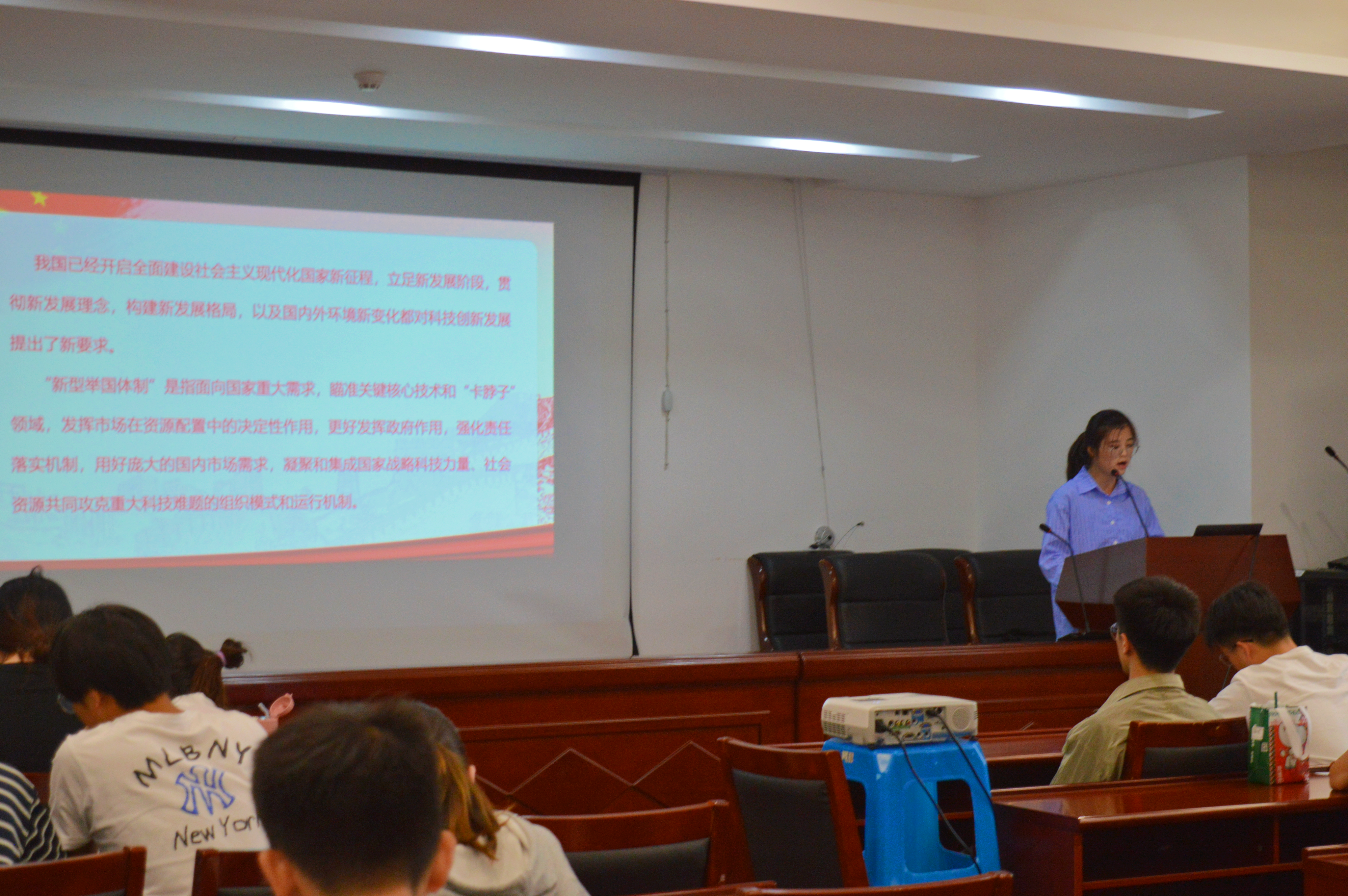 会上,院研究生会赵紫云同学领学了《健全关键技术攻关新型举国体制》,从“新型举国体制”是什么,“新”在哪以及“新型举国体制”具体怎么做三个方面展开介绍,号召大家坚持党的领导,提高科技创新的意识,在新时代为更好推动中国特色社会主义事业继续前行贡献自己的一份力。刘梦伟同学领学了《关于全面加强资源节约工作的意见》,深入学习习近平生态文明思想,贯彻习近平总书记关于碳达峰碳中和的重要讲话和指示精神。