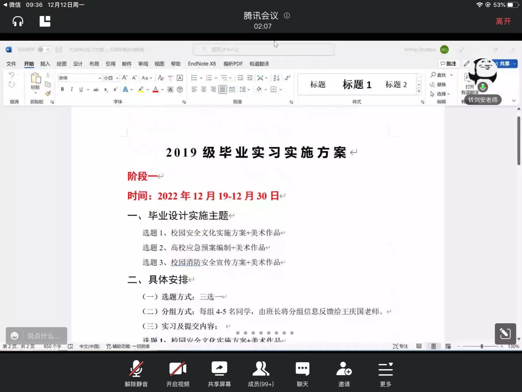 12月12日上午,太阳集团tyc33455官网于线上举办2019级毕业班座谈会。安全工程系主任钱剑安、副主任王庆国,消防工程系副主任王华,毕业班辅导员钱露以及2019级本科生参加会议,座谈会由毕业班辅导员钱露老师主持。