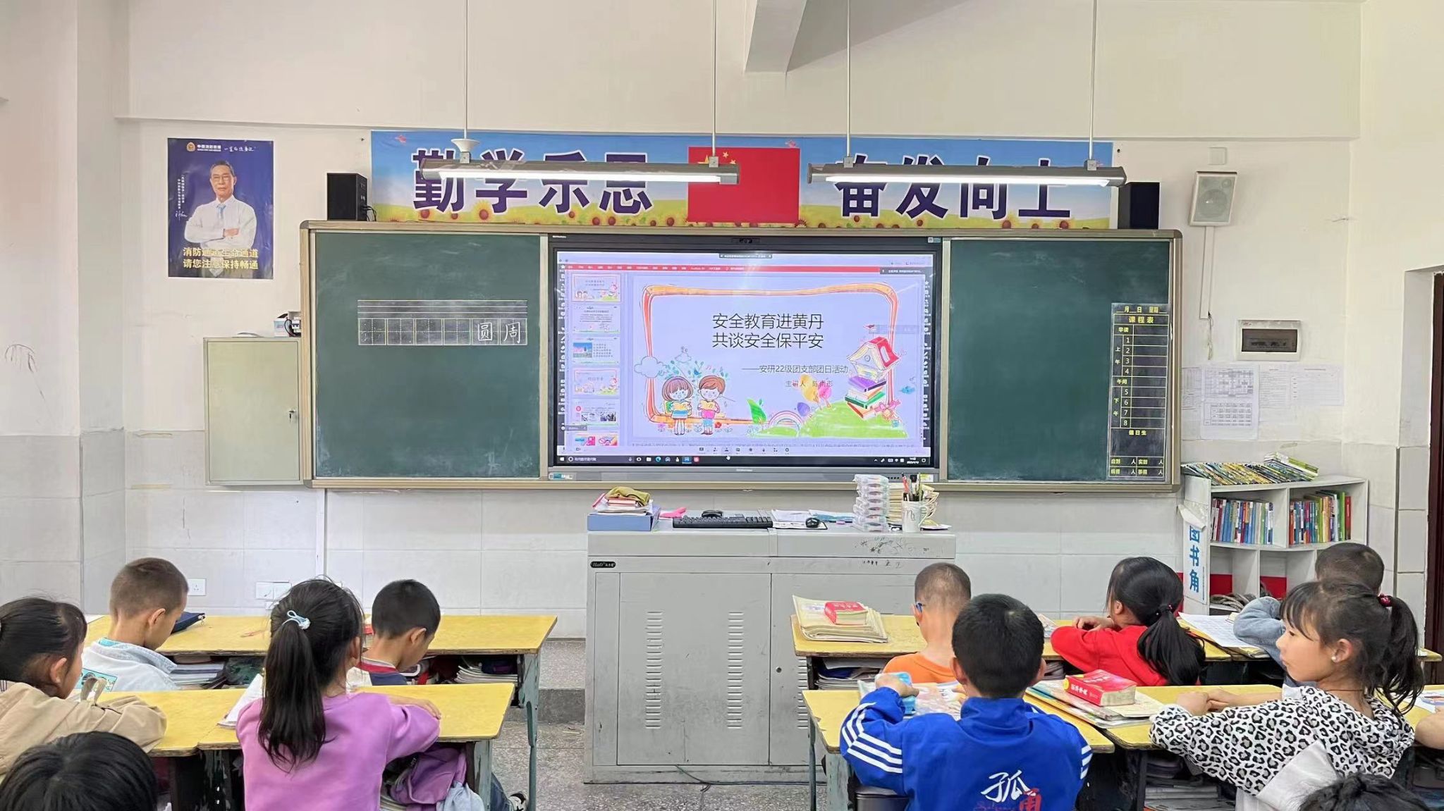 活动伊始,团支书陈雨彤向小朋友们说明了活动意义——进一步增强员工安全意识,营造平安和谐的校园氛围。团支部成员王泽鹏、罗肖寒、李相逊分别围绕校园安全、交通安全、防校园欺凌等三个方面进行讲解。团支书陈雨彤结合所带员工日常生活实际,带领同学们开展安全知识问答,活动生动而有趣。最后,校研支团成员组织员工思考交流,同学们一致表示要争做自己的“首席安全官”。