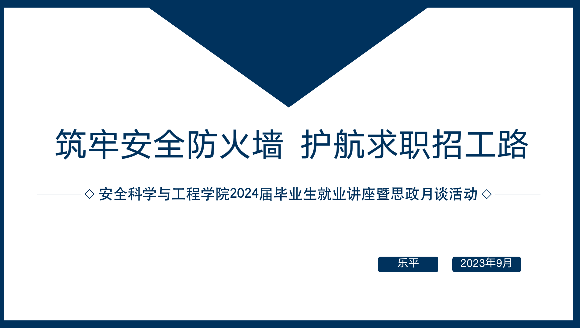 辅导员乐平结合暑期企业挂职锻炼经历,讲解安全工程专业、消防工程专业就业去向,鼓励大家调整求职就业心态,抓住秋招机会,多准备早行动。她以案例分享的形式,讲解了求职类诈骗惯用技俩和防范技巧,提醒员工在求职创业过程中加强自我保护意识、警惕诈骗陷阱。