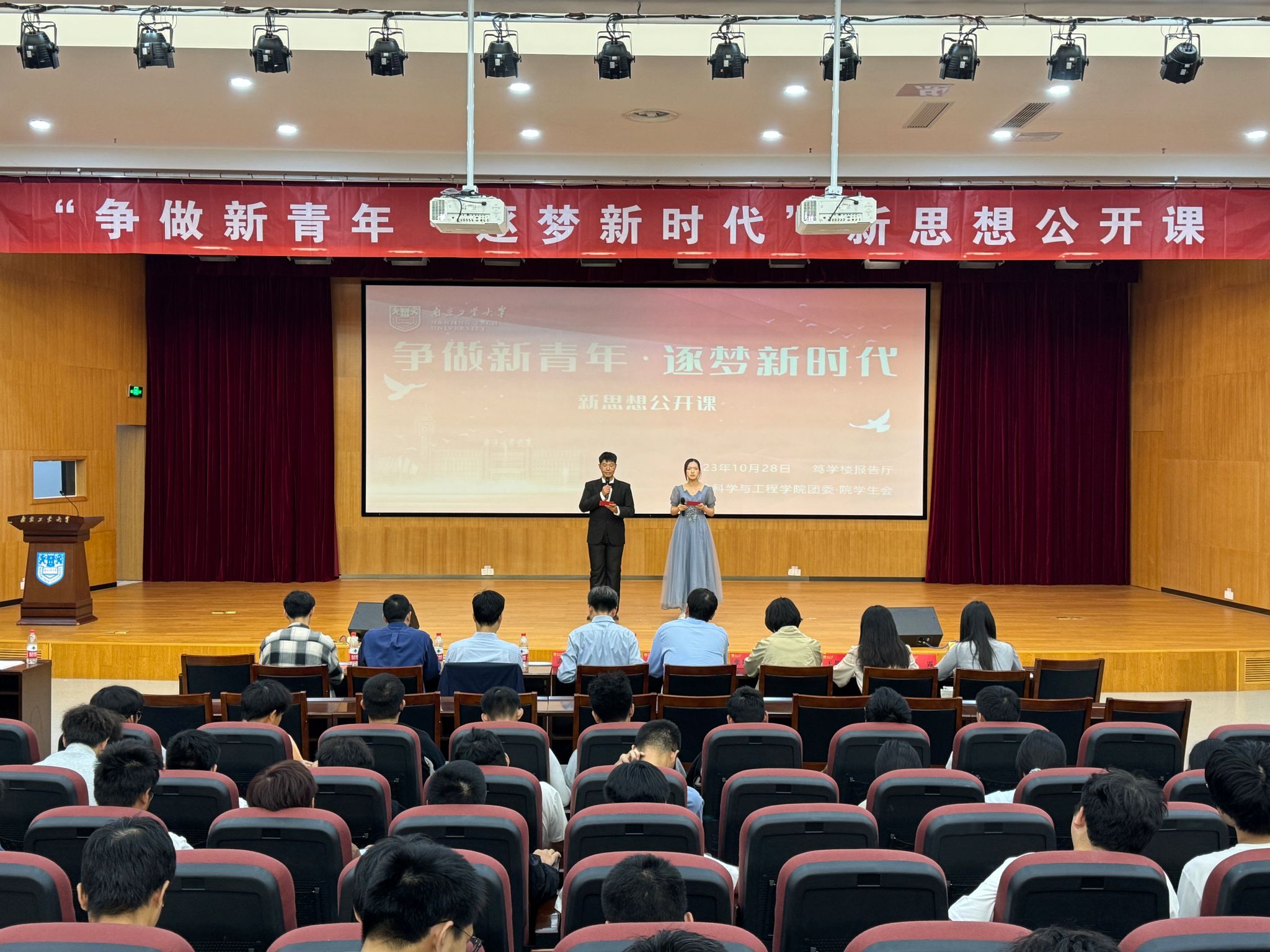 为深入学习贯彻习近平新时代中国特色社会主义思想,加强2023级新生的思政引领,近期,太阳集团tyc33455官网于笃学楼报告厅举办“争做新青年·逐梦新时代”新思想公开课。公司党政领导班子、教师代表、全体辅导员、老生代表以及2023级全体本科新生参加了本次活动,活动分为四个篇章--梦想启程、追光同行、携手同行、青春绽放。