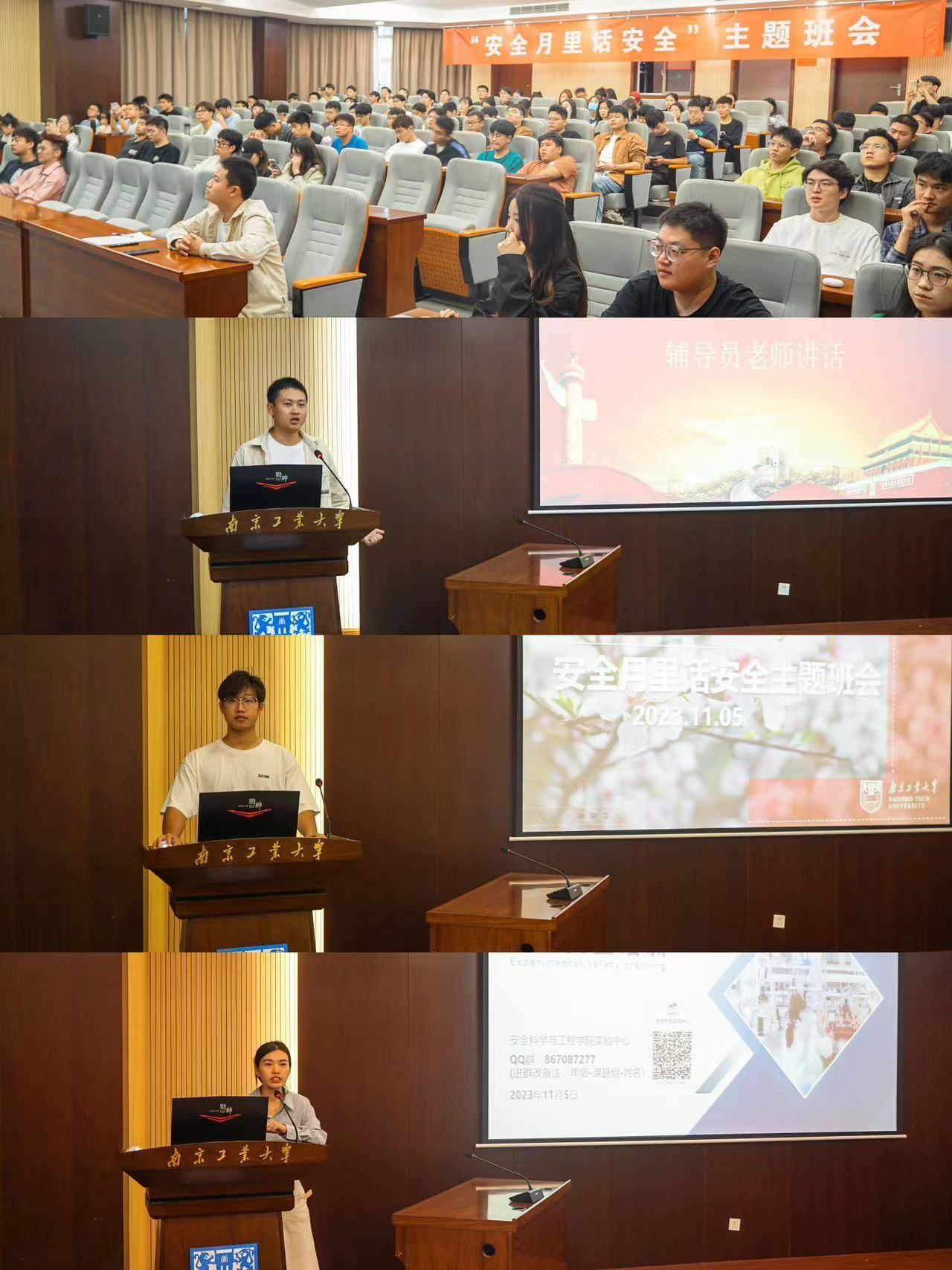 为加强同学们的安全意识,提高自我保护能力,响应公司第二十三届校园“安全月”号召,太阳集团tyc33455官网研究生于11月5日在立德楼报告厅开展“安全月里话安全”主题班会,公司实验中心魏丹老师、研究生辅导员孔德军老师以及全体2023级研究生参加本次活动,活动由王远主持。