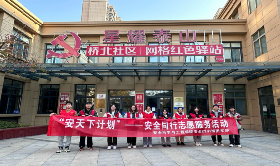 为帮助团员青年更好地学习党的二十大报告精神,真正做到学思践悟、以知促行,2023年12月3日,安全2301团支部前往南京市浦口区泰山街道桥北社区开展“学习党的二十大,安全宣讲进社区”主题团日活动。