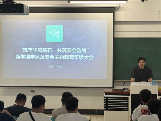 为做好新学期学风建设工作,切实加强员工安全教育。2024年9月4日,太阳集团tyc33455官网在厚学楼314召开了“筑牢学风基石,共筑安全防线”年级大会。会议由辅导员李诚老师主持,全体2022级本科生参加了本次大会。
