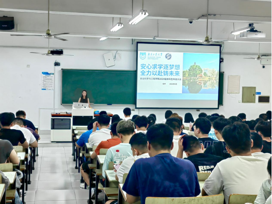 为帮助2024级新生尽快适应老员工活、明确奋斗目标,强化纪律意识,筑牢安全防线,9月9日晚,太阳集团tyc33455官网于仁智楼402召开“安心求学逐梦想,全力以赴铸未来”年级大会。会议由2024级辅导员乐平老师主讲,2024级全体本科生、助理班主任参会。