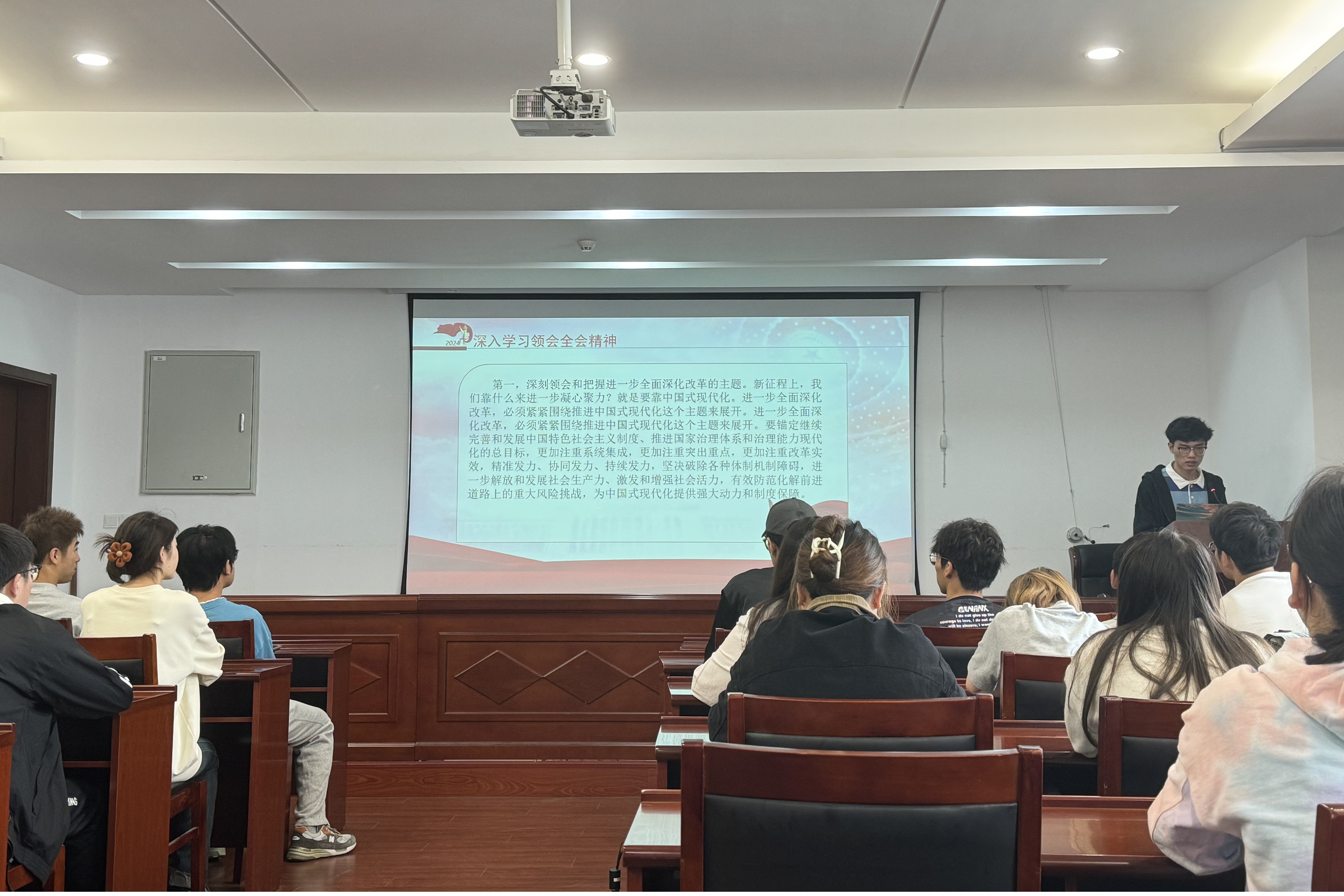 太阳集团tyc33455官网研究生会于10月17日在厚德楼309会议室召开十月理论学习会,本次会议由张彪和李帆领学习近平总书记在党的二十届三中全会第二次全体会议上的讲话内容,院研会成员积极参与。会上,张彪和李帆带领大家重温讲话内容,深刻领会和把握进一步全面深化改革的主题、重大原则、重大举措、根本保证以及扎实做好下半年工作的规划蓝图,激励大家要勇担责任、愈挫愈勇、不断进步、砥砺前行。