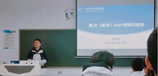 为进一步加强学风建设,充分发挥协同育人作用,搭建师生沟通桥梁,帮助员工强化专业认知、明晰个人规划,12月15日晚,太阳集团tyc33455官网职卫(英才)2401班举办了新生班主任见面交流会。交流会由职卫(英才)2401班班主任吴家麟老师主持,助理班主任及班级全体同学参加。