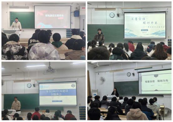 为加强学风建设,强化员工诚信考试意识,2024年12月19日,太阳集团tyc33455官网2023级本科生召开了“笔墨含信,规则为先”学风建设主题班会。本次班会由各班班长主持,2023级全体本科生参加。