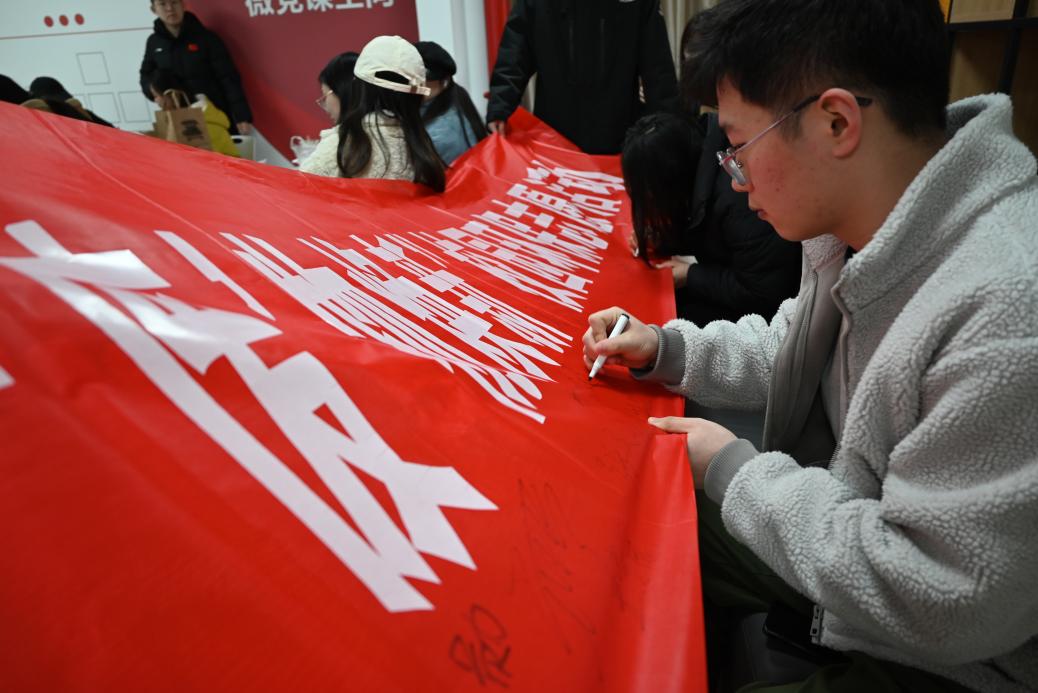 活动分为环保宣讲、视频宣传、废旧物品再改造、领取绿植种子、签名合照五个环节。活动开始,黄千千同学向大家发起“地球一小时”的绿色倡议,宣传废品回收的重要性以及环保行动的意义。随后,同学们借助马克笔、胶棒、剪刀、美工刀等工具,将废旧物品巧妙改造,制作出一件件栩栩如生的手工艺品。工作人员组织同学们在横幅上签名,以此表达他们践行环保的决心。最后,大家手捧绿植种子,一同合影留念,为活动画上了圆满的句号。