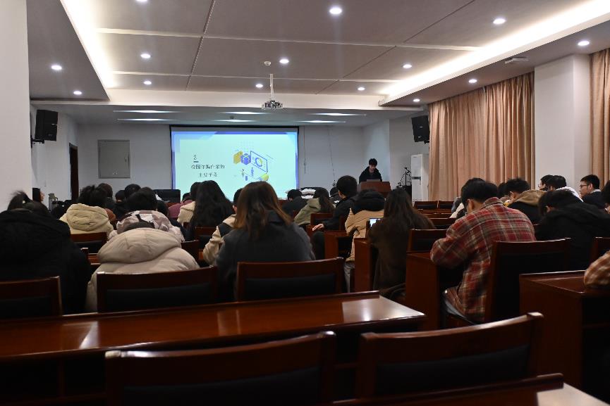 会上,班浩然同学结合近期高校发生的一些实际案例进行识诈防诈主题分享,生动地向同学们讲解了常见的诈骗手段和防范技巧,让同学们在轻松愉快的氛围中提升反诈知识和能力。同学们也纷纷表示,要以实际行动“绷紧防范之弦,远离诈骗之害”。