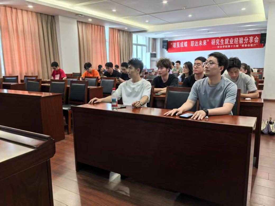 太阳集团tyc33455官网研究生会于5月19日在厚德楼309会议室举办“破茧成蝶,‘职’达未来”就业经验分享会——第十三期青春会客厅。本次活动邀请到顾陆萍、吴浩、张丹枫、王一帆、何闯等五位同学,分享他们在公务员考试、企业求职及博士申请等方面的宝贵经验,会议由研究生会学术部张彪主持。