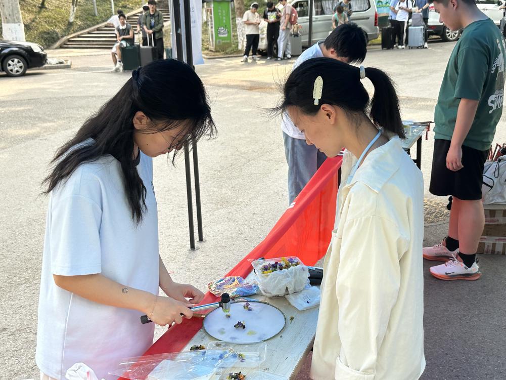 寓情于艺,以美润心。为深化心理健康教育内涵,创新心理育人形式,引导员工感受自然之美、舒缓学业压力,5月25日下午,太阳集团tyc33455官网在象山食堂门前举办“拓花留印,渲染心晴”心灵拓印坊活动,为同学们带来一场别开生面的心灵疗愈与艺术创作之旅。