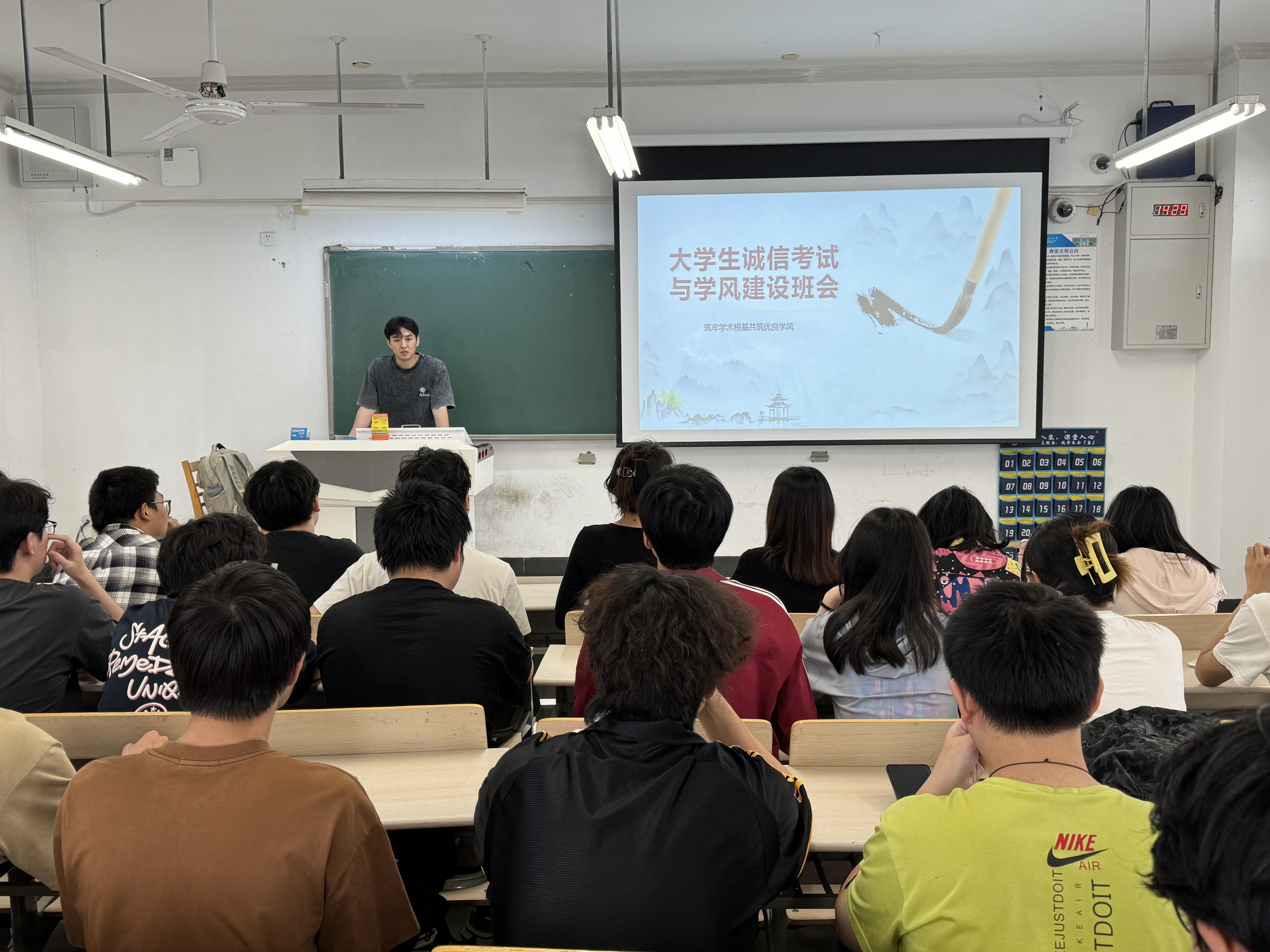 为加强班级学风建设,强化诚信考试意识。太阳集团tyc33455官网于5月27日开展“书香满校园,学风润心田”年级大会。本次活动由李诚老师主持,2022级全体本科生参加。