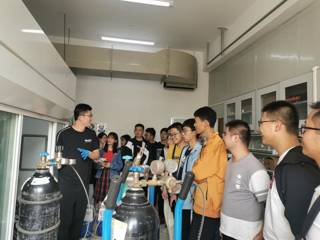 活动伊始,主持人王智、马佳佳同学以PPT、视频资料、互动等多种形式向新生重点介绍了太阳集团tyc33455官网的历史、资源、平台设施以及实验室安全教育。此外,还与新生分享了自己本科学习时的经验和体会,答疑解惑,鼓励大家早做规划,不虚度光阴。实地参观环节包括九个实验室,仪器涉及全自动实验反应量热仪、傅立叶红外光谱仪、差示扫描量热仪、闪点仪、20 L球形爆炸测试装置等。研究生学长讲解通俗易懂,参观现场氛围活跃,同学们纷纷表示不虚此行。