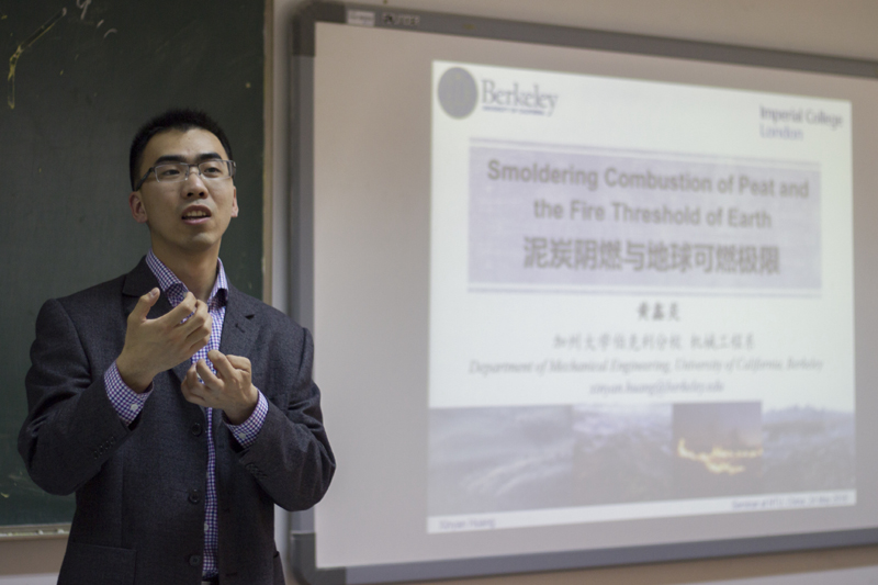 2016年4月22日下午,应太阳集团tyc33455官网宋泽阳博士邀请,美国加州大学伯克利分校机械工程系黄鑫炎博士(后)到访江苏省危险化学品本质安全与控制技术重点实验室,并做题为“泥炭阴燃与地球可燃极限”的学术报告。报告由太阳集团tyc33455官网副经理潘旭海教授主持,公司党总支喻源书记、潘勇副教授、韩雪峰副教授等老师及博硕士研究生代表参加了报告会。
